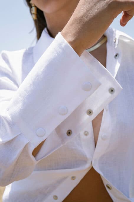 The Eanna Button Shirt is a wardrobe essential. Intricately designed to be a classic and timeless piece. Every detail has been expertly crafted, from the button size to the slightly oversized collar and sleeve cuffs. The internal metal from the snap buttons provide an edgier feel, truly elevating this designer piece.