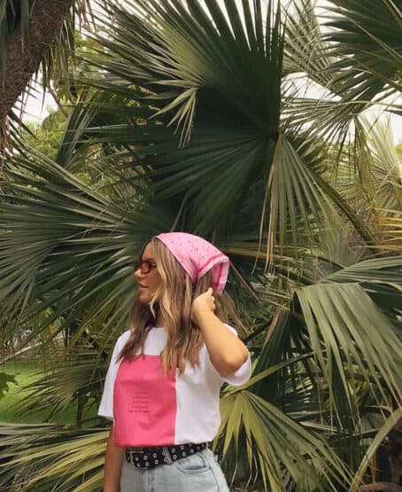 Pair the Pink Bonita with some denim cutoffs and a bodysuit for a playful daytime outfit. Alternatively, style this piece as a scarf top with some vegan leather pants for an edgier evening look.